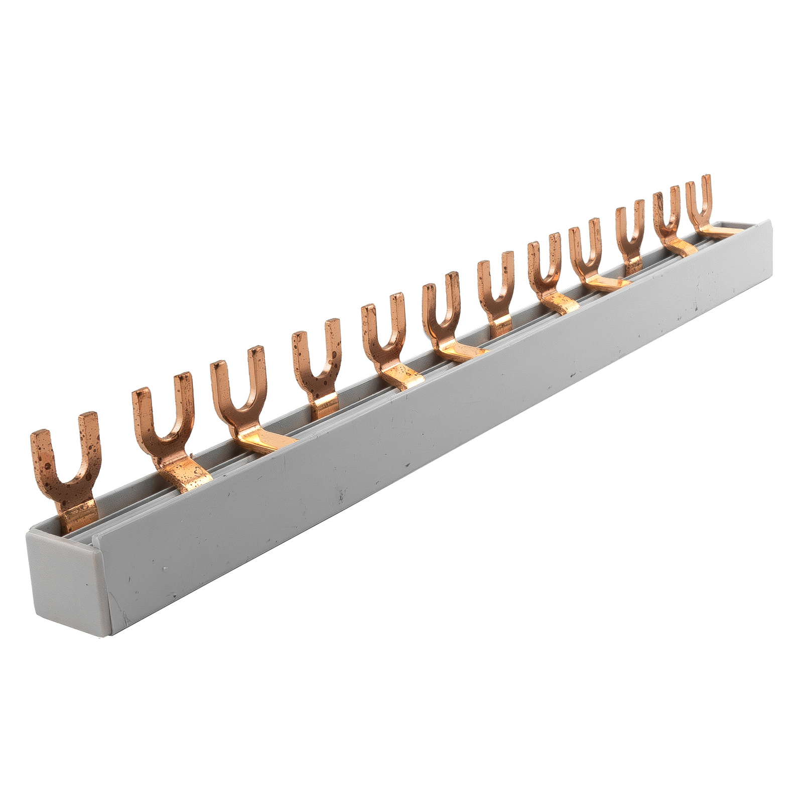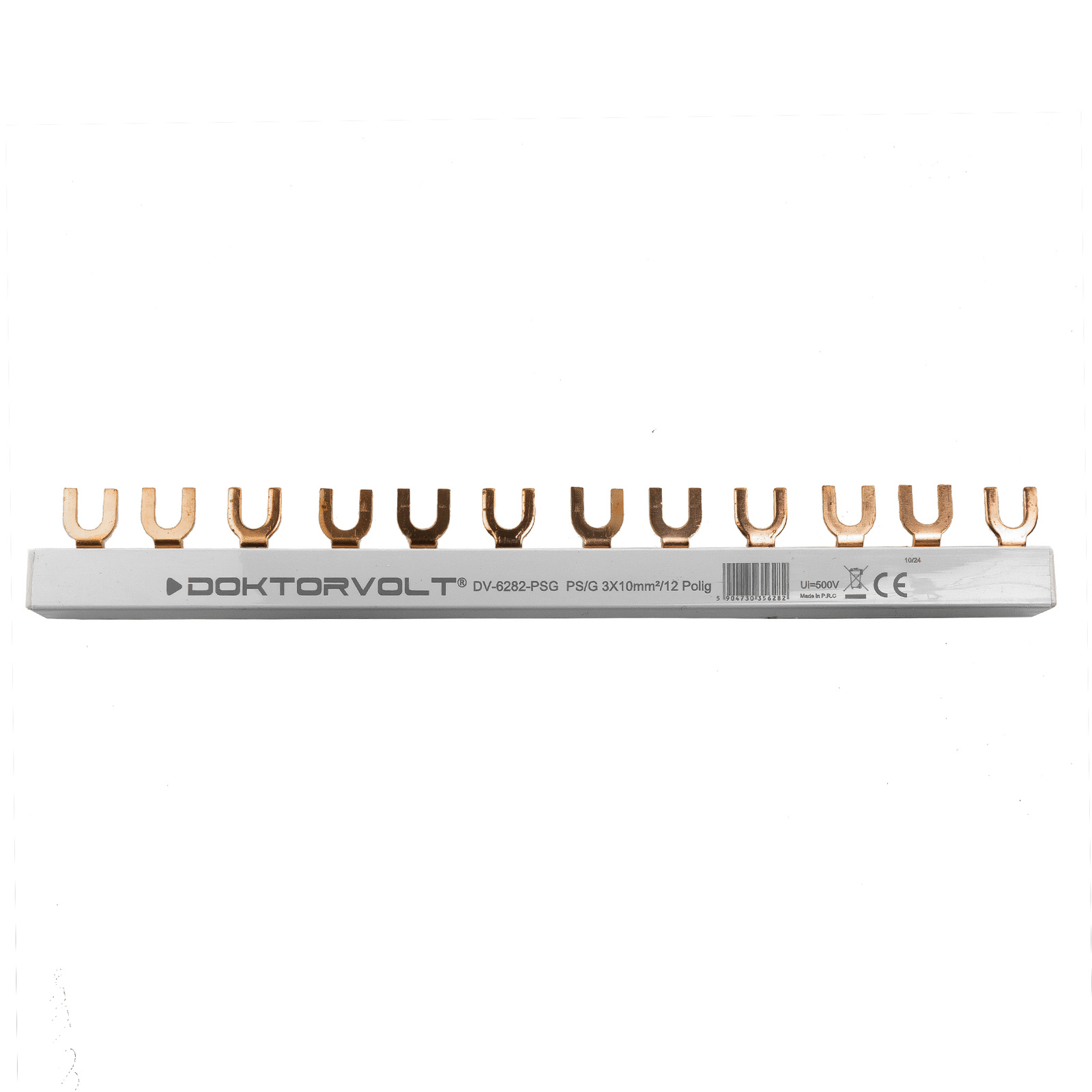 - Szyna fazowa 3P z końcówką widełkową marki Doktorvolt to niezawodne rozwiązanie do rozdzielnic modułowych. Umożliwia łatwe i bezpieczne podłączenie 12 urządzeń, zapewniając równomierny rozdział zasilania do 63A przy przekroju 10 mm².