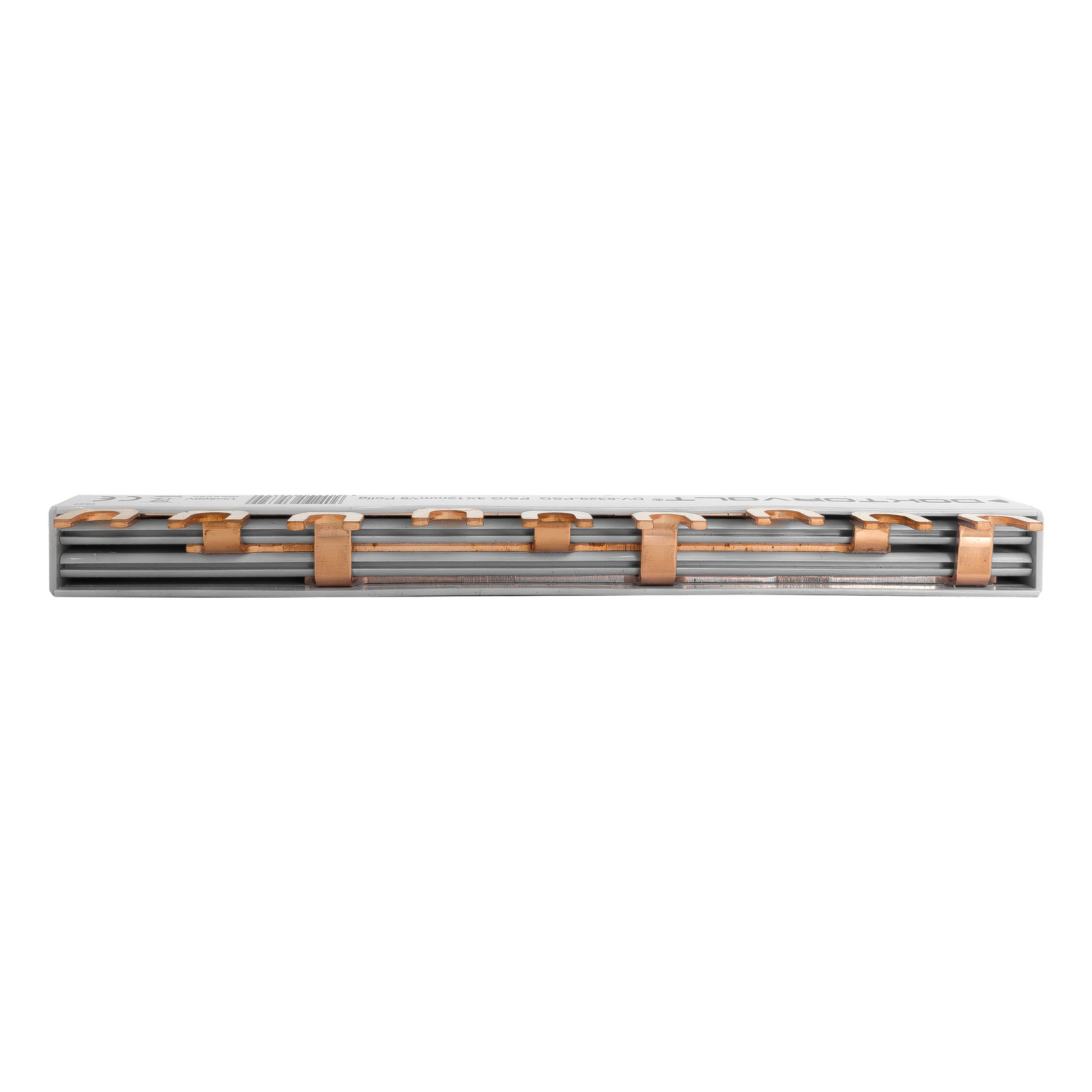 Trójfazowa szyna grzebieniowa 3P marki Doktorvolt z końcówką widełkową zapewnia równomierny rozdział mocy do 80A. Przeznaczona do 9 urządzeń, długość 16,5 cm, przekrój 12 mm² – idealna do zastosowań przemysłowych i budowlanych.
