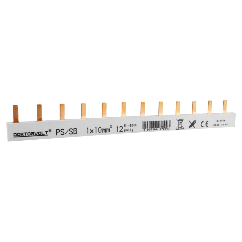 - Szyna łączeniowa sztyftowa PS/SB 1-fazowa 12-modułowa 10mm2 obustronnie izolowana