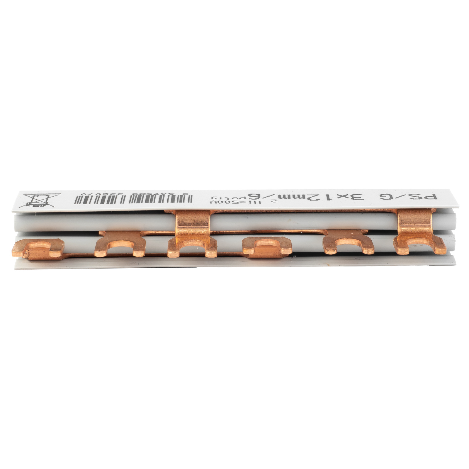 - Szyna grzebieniowa 3-fazowa o prądzie znamionowym 80A, 6-modułowa, z przekrojem 12 mm².