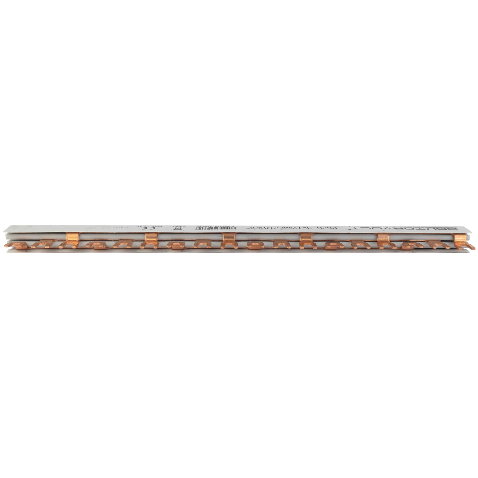 Szyna łączeniowa do rozdzielnic trójfazowych o przekroju 12mm² i 18 modułach. Kolor biały, prąd znamionowy 80A.
