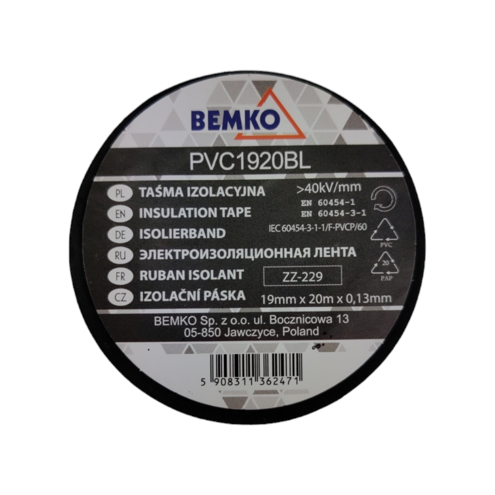 Taśma izolacyjna czarna 19x20m E30-PVC1920BL