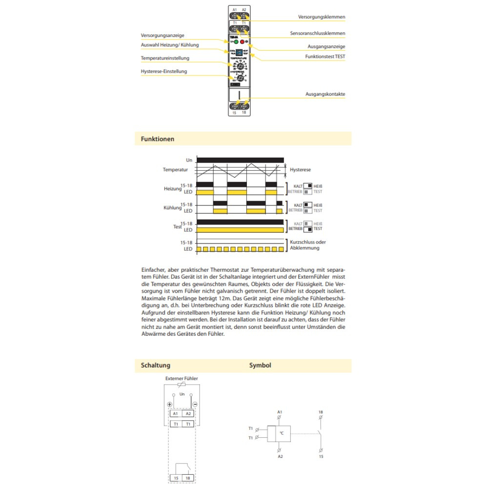 Praktyczny termostat służący do nadzoru temperatury np. w szafach rozdzielczych, systemach grzewczych, klimatyzacjach, cieczy, chłodnic, silników, urządzeń, otwartych przestrzeni.