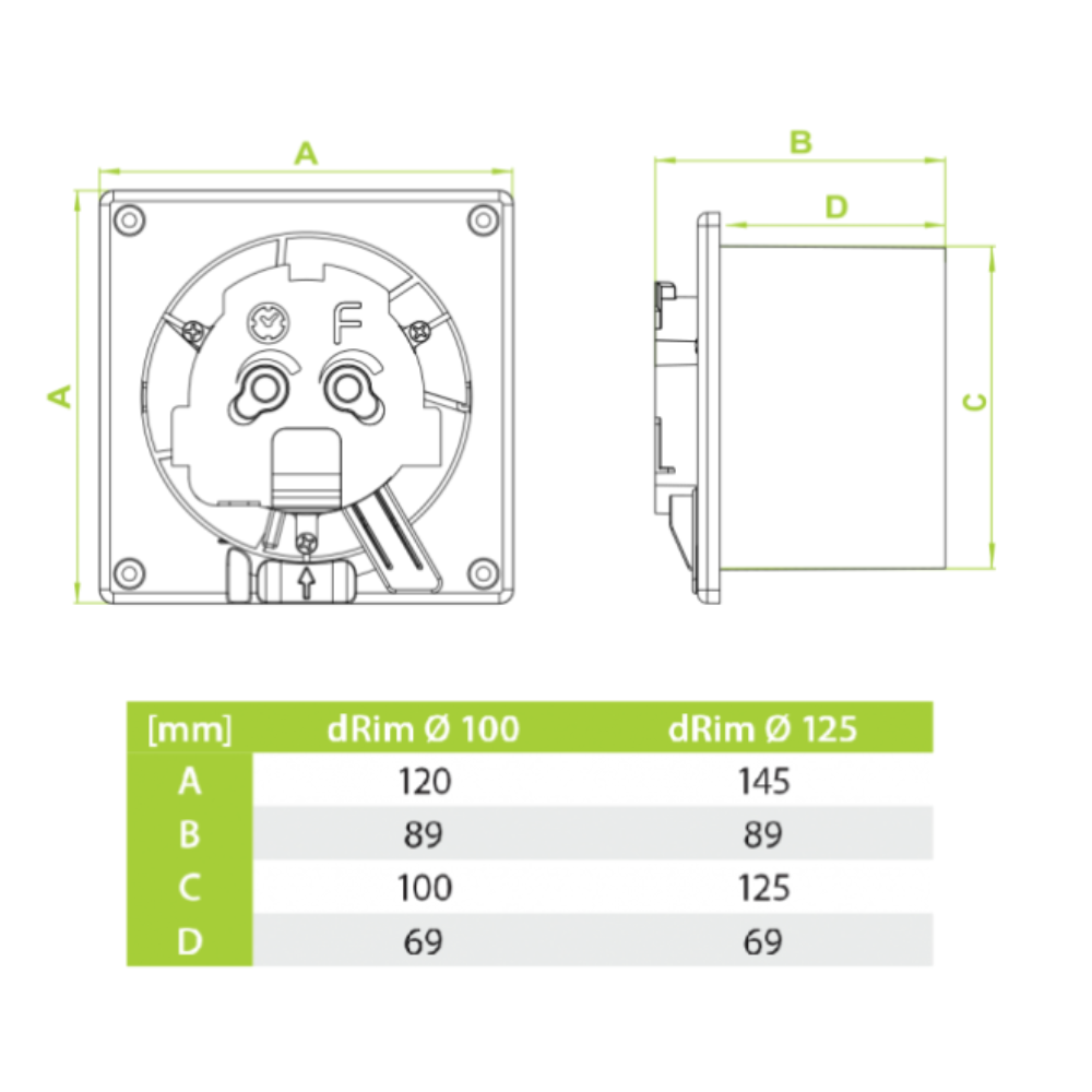 Wentylator dRIM ścienno-sufitowy 230V 100mm o wymiarach 12x12cm