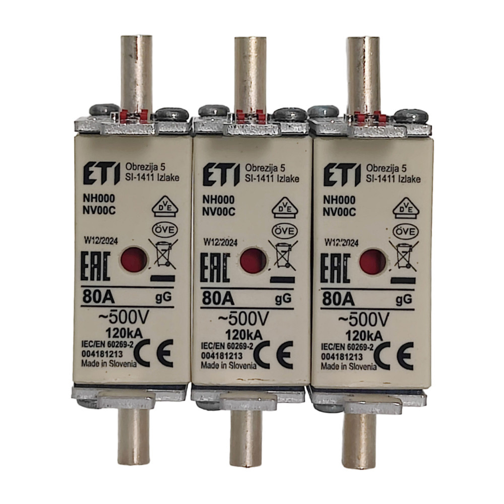 - Wkładka bezpiecznikowa topikowa NH000 WT-00C KOMBI Bezpiecznik ETI 80A Bezpiecznik przemysłowy