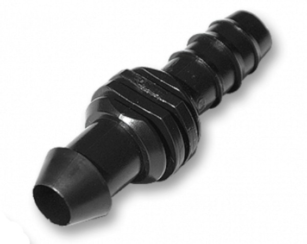 Wpinka z uszczelką w całości wykonana jest z wytrzymałego tworzywa sztucznego o wysokiej jakości. Przemyślana konstrukcja pozwala na łatwe i solidne włączenie elementu w linię kroplującą bez obawy o przepuszczanie wody. Wpinka zakończona jest wtykiem na wąż 12mm.