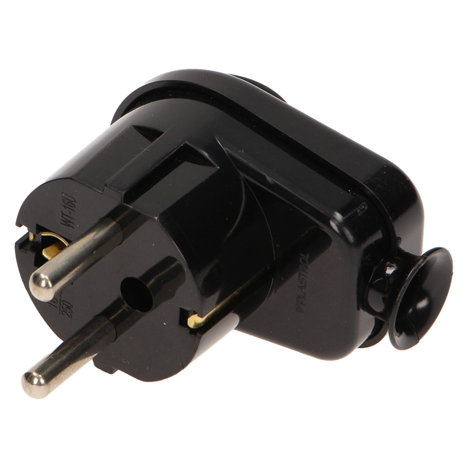 Wtyczka kątowa 2P+Z Schuko z uchwytem. czarna WT-16UZ/CZARNY