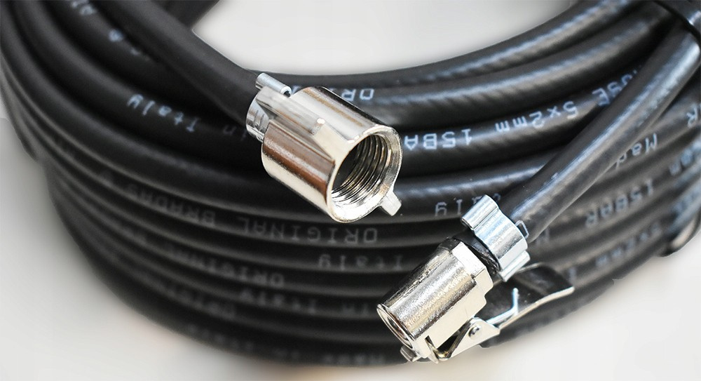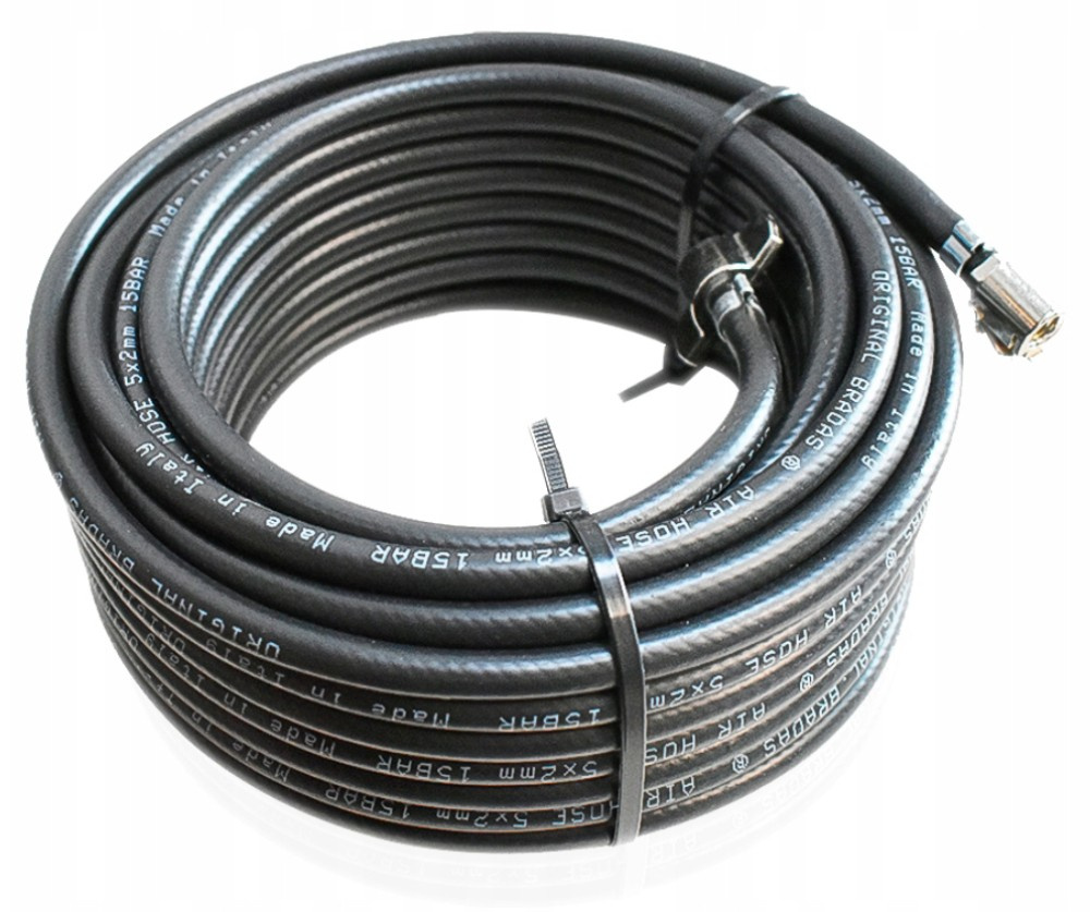 Zbrojony przewód do pompowania kół o długości 18 metrów. Wyposażony w profesjonalne złącza. Średnica wewnętrzna kabla 5mm x 2mm (ścianki)