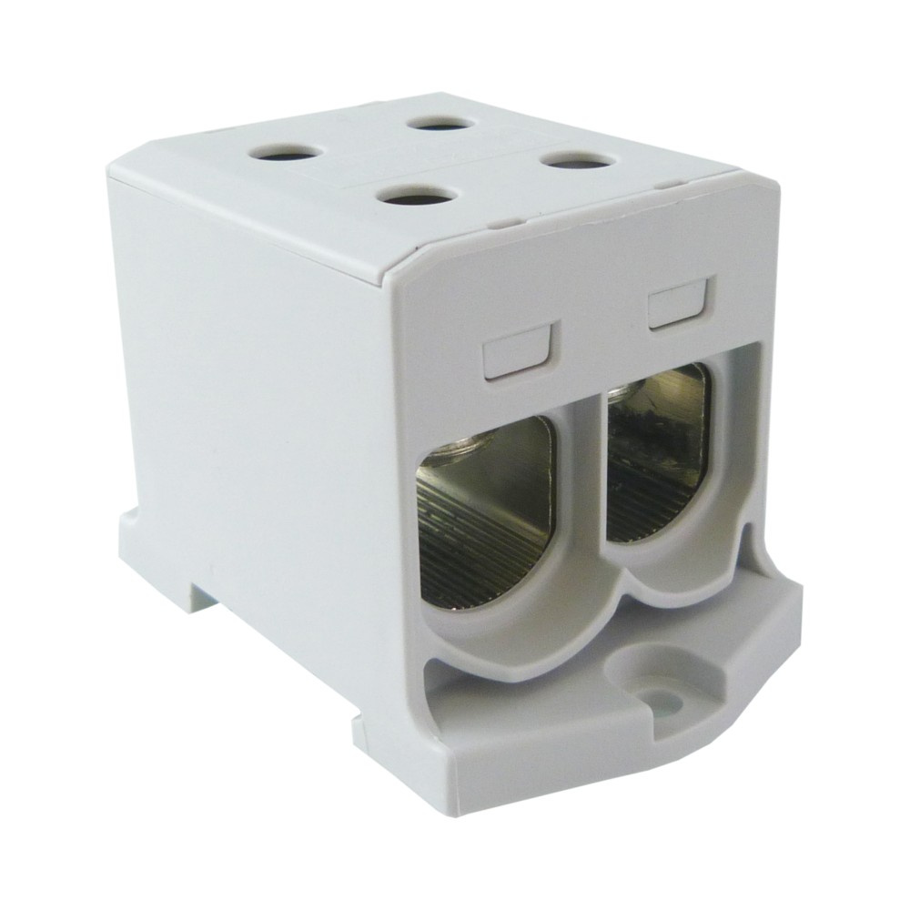 - Złączka szynowa 25-150mm2 szara 4 otwory zaciskowe 1 torowa AL/CU gwintowa 1000V na szynę TH35 1polowa MAA2150A10 Morek