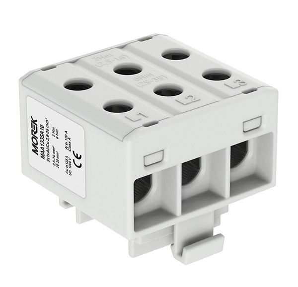 Złączka szyn. 2,5-35mm2 szara 6otwor 3P Morek MAA1335A10