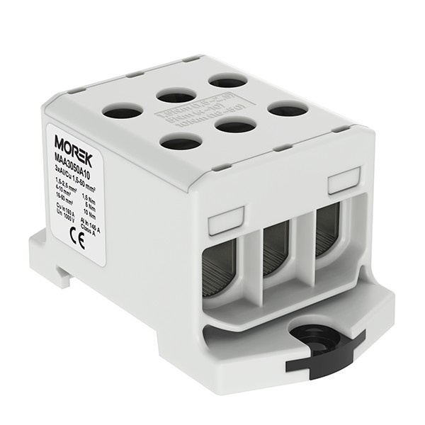 Złączka szynowa 1,5-50mm2 szara 6otwor AL/CU 1000V TH35 1P Morek MAA3050A10