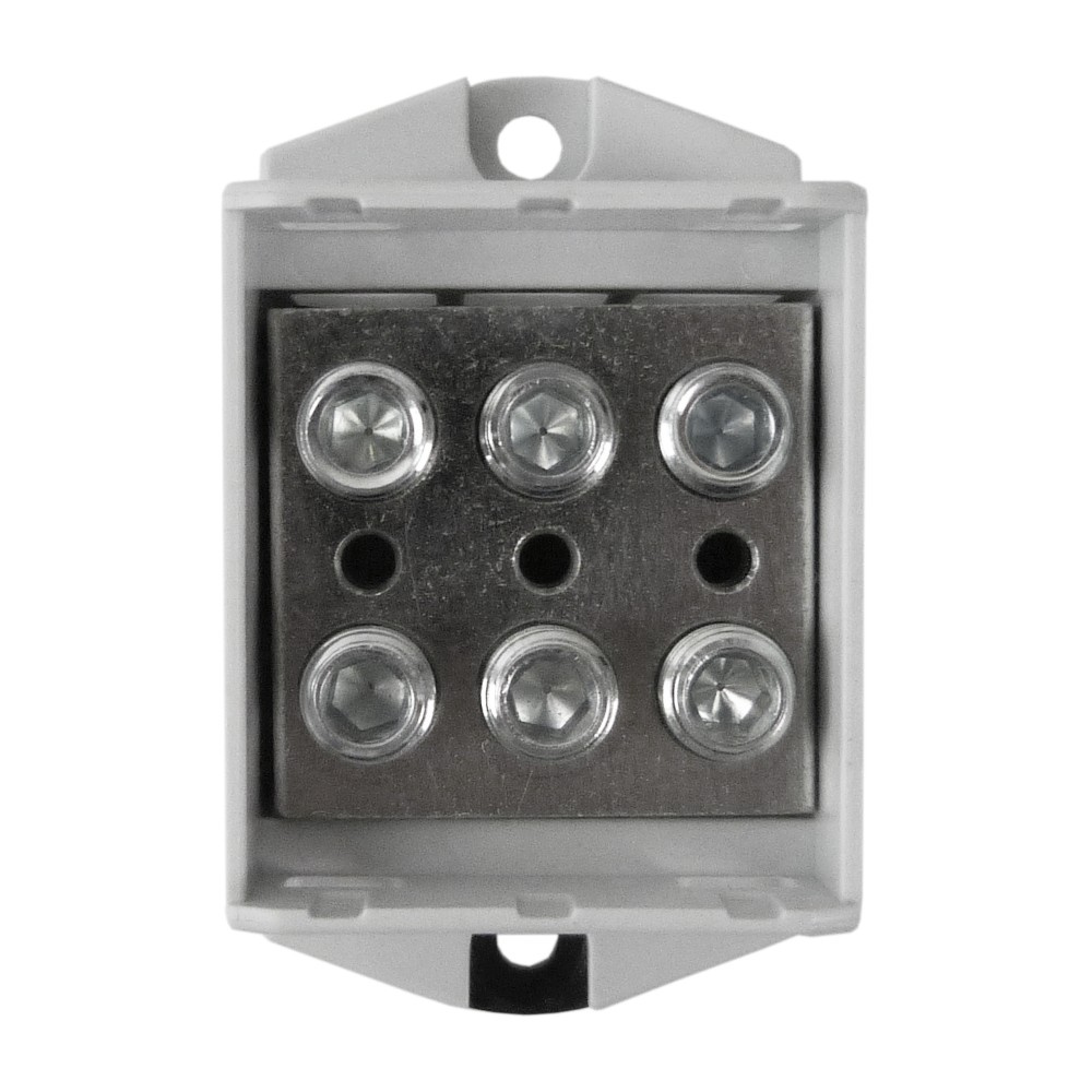- Złączka szynowa 1,5-50mm2 nieb. 6 otworów zaciskowych 1 torowa AL/CU gwintowa 1000V na szynę TH35 1polowa MAA3050B10 Morek