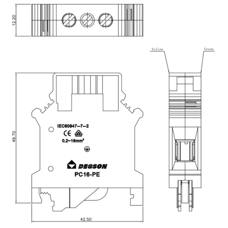 Instalacja elektryczna złożona z wielu przewodów musi zapewniać ciągłość przepływu prądu w obwodzie. Złączki przelotowe są montowane na szynie DIN TH/TS 35 i umożliwiają łączenie przewodów oraz ich mostkowanie. Złączki szynowe serii PC umożliwiają łączenie przewodów o przekroju 0.2 - 16mm2 (12 - 4 AWG) przy pomocy zacisków śrubowych. Obudowy złączek zostały wykonane z wysokojakościowych tworzyw sztucznych PA66 oraz UL94V-0. Wszystkie elementy metalowe w złączce zostały wykonane z powlekanego stopu miedzi. Złączki szynowe DEGSON przeszły wiele testów potwierdzających ich jakość i wytrzymałość. Złączkom zostały przyznane certyfikaty UL oraz VDE.
