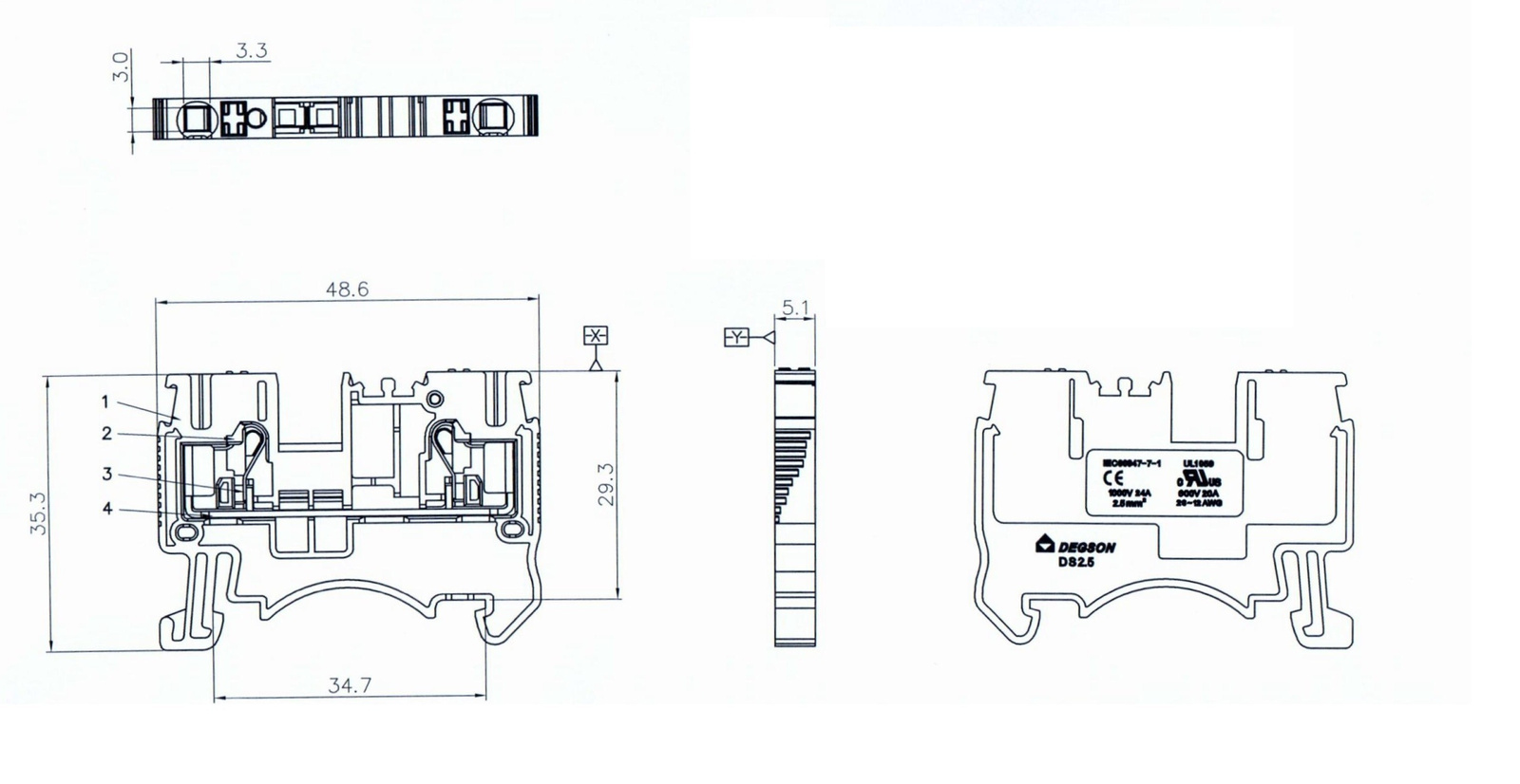 Instalacja elektryczna złożona z wielu przewodów musi zapewniać ciągłość przepływu prądu w obwodzie. Złączki przelotowe są montowane na szynie DIN TH/TS 35 i umożliwiają łączenie przewodów oraz ich mostkowanie. Złączki szynowe serii DS2.5 umożliwiają szybkie i wygodne łączenie przewodów o przekroju 0.2 - 2,5mm2 (26 - 12 AWG) przy pomocy zacisków sprężynowych. Obudowy złączek zostały wykonane z wysokojakościowych tworzyw sztucznych PA66 oraz UL94V-0. Wszystkie elementy metalowe w złączce zostały wykonane z powlekanego stopu miedzi. Złączki szynowe DEGSON przeszły wiele testów potwierdzających ich jakość i wytrzymałość. Złączkom został przyznany certyfikat normy UL.