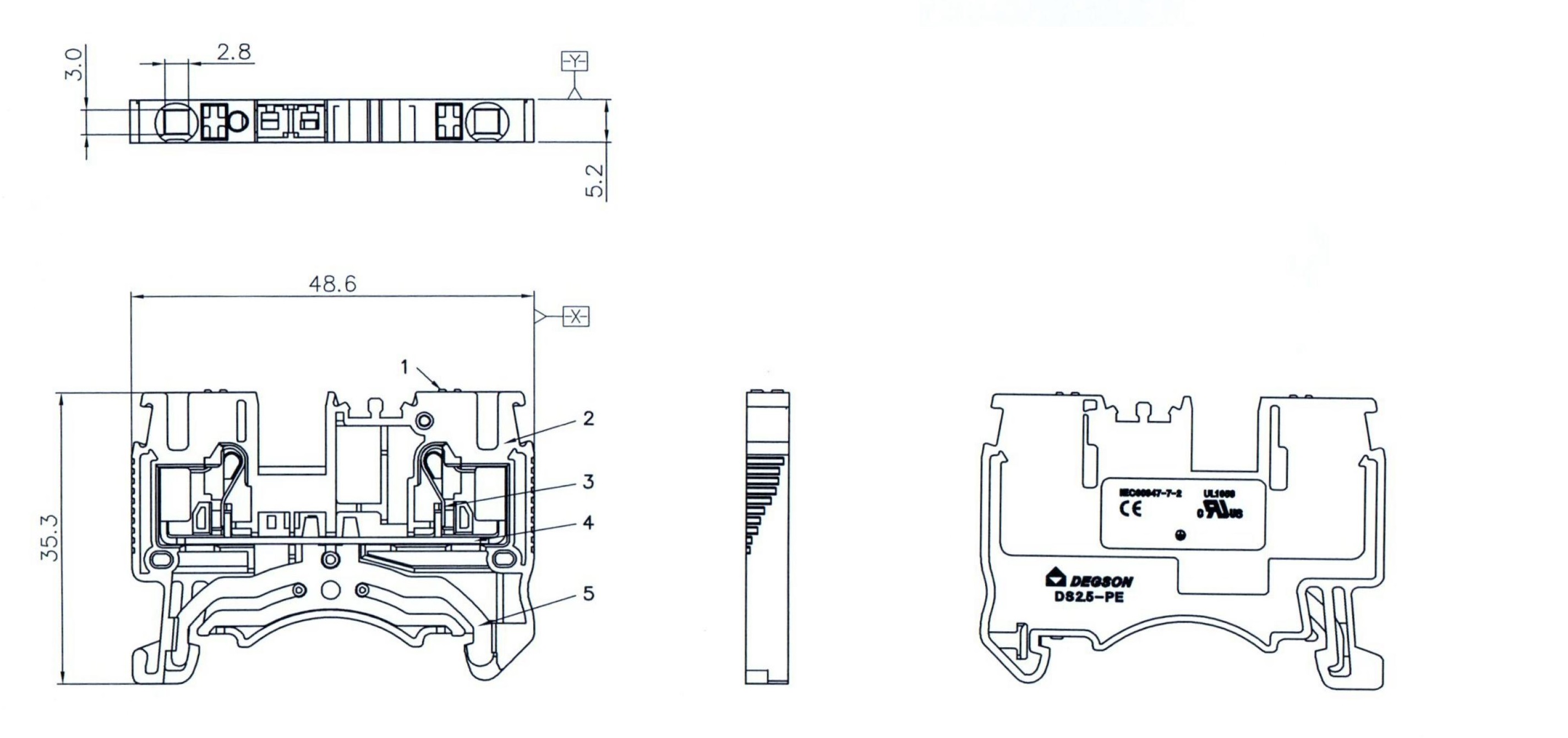 Instalacja elektryczna złożona z wielu przewodów musi zapewniać ciągłość przepływu prądu w obwodzie. Złączki przelotowe są montowane na szynie DIN TH/TS 35 i umożliwiają łączenie przewodów oraz ich mostkowanie. Złączki szynowe serii DS2.5 umożliwiają szybkie i wygodne łączenie przewodów o przekroju 0.2 - 2,5mm2 (26 - 12 AWG) przy pomocy zacisków sprężynowych. Obudowy złączek zostały wykonane z wysokojakościowych tworzyw sztucznych PA66 oraz UL94V-0. Wszystkie elementy metalowe w złączce zostały wykonane z powlekanego stopu miedzi. Złączki szynowe DEGSON przeszły wiele testów potwierdzających ich jakość i wytrzymałość. Złączkom został przyznany certyfikat normy UL.