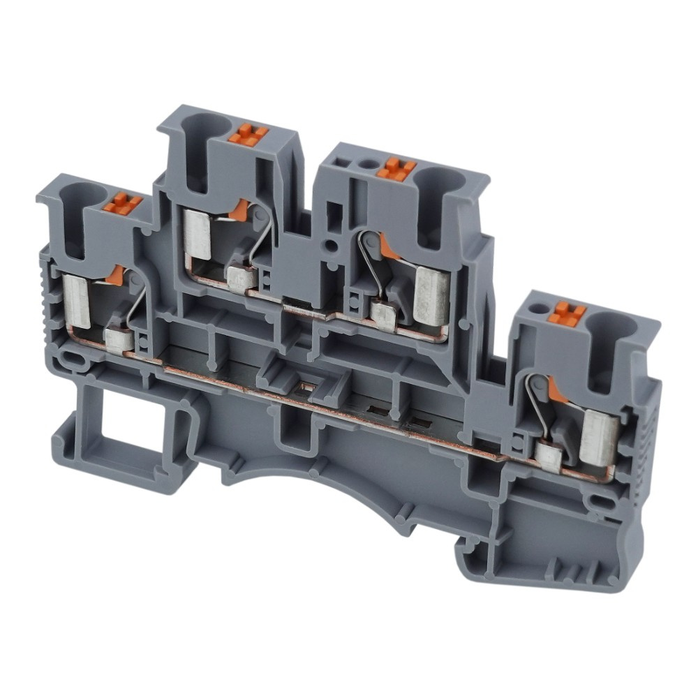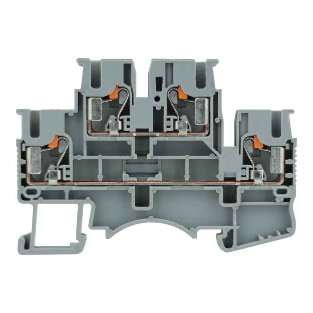 - Złączka szynowa zaciskowa 2,5mm2 2-poziomowa 4-przewodowa szara z zaciskiem sprężynowym 26-12 AWG