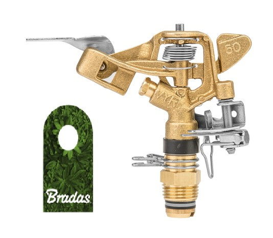 - Zraszacz mosiężny pulsacyjny obrotowy regulowany sektorowy 360° GZ1/2" BRADAS