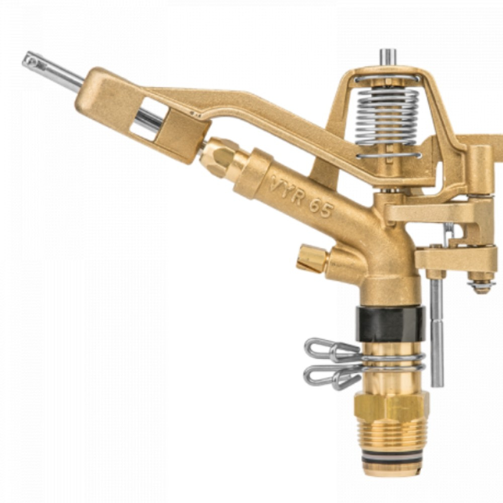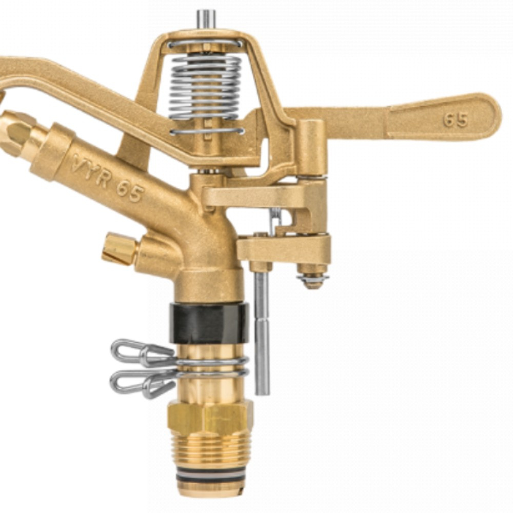Mosiężny pulsacyjny obrotowy regulowany sektorowy zraszacz z gwintem zewnętrznym 1", służy do zamocowania na kolcu lub na statywie. Posiada stabilną konstrukcję co gwarantuje długie i niezawodne użytkowanie. Zraszacz pozwala na regulowanie pola zraszania od 20° do 360°. Maksymalna średnica zraszania wynosi 50m.