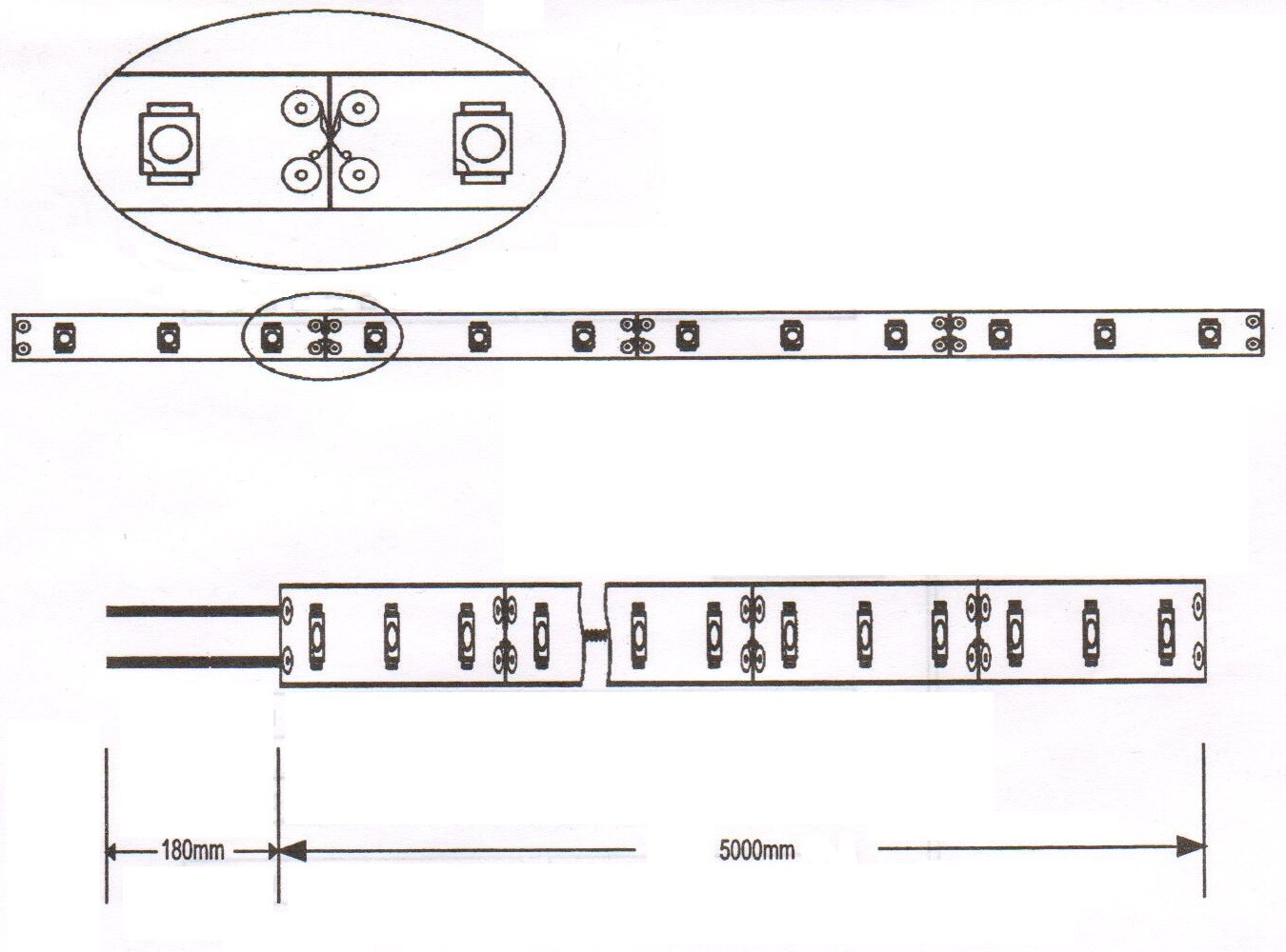 przycinanie w zaznaczonych miejscach co 3 diody SMD |